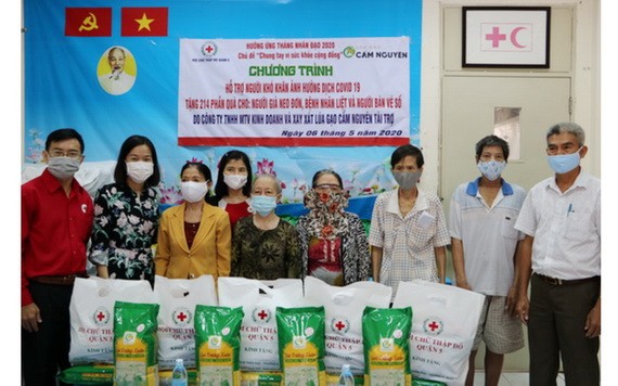 In order to carry out the charity event "Responding to humane month" with the theme "Joining hands for the public health", the Red Cross District 5 and Cam Nguyen Rice Company cooperated to donate to 214 people in district yesterday morning, Gifts were given to the elderly, disabled people, Agent Orange victims and lottery sellers. Truong Canh Ba, vice chairman of the People's Committee of District 5, and Huynh Nha My, deputy director of Cam Nguyen Rice Company, were invited to attend. On the same day, each beneficiary received 10 kg of aromatic rice, 2 bottles of soy sauce and 5 packets of instant noodles. The total value of the event is 32 million VND, in which Cam Nguyen Company sponsors fragrant rice worth 27 million VND